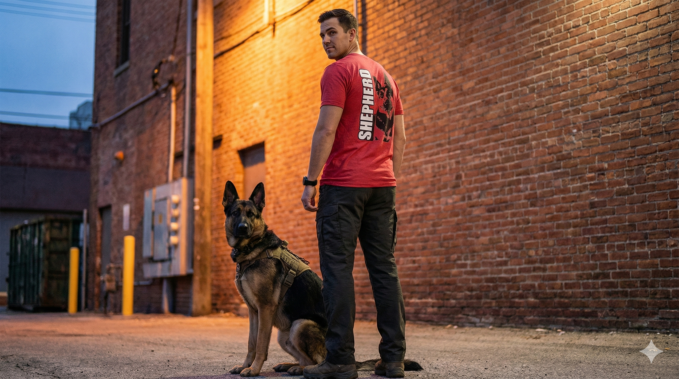 Men's Shepherd Tee | Bold Vertical 'SHEPHERD' with GSD Design